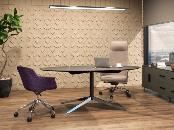 Encantadora silueta ovalada y estructura estilizada, Miller es una pieza que armoniza esos espacios que buscan versatilidad, ésta se distingue por la forma de su base en acero inoxidable y su cubierta con acabados únicos que denotan sofisticación.